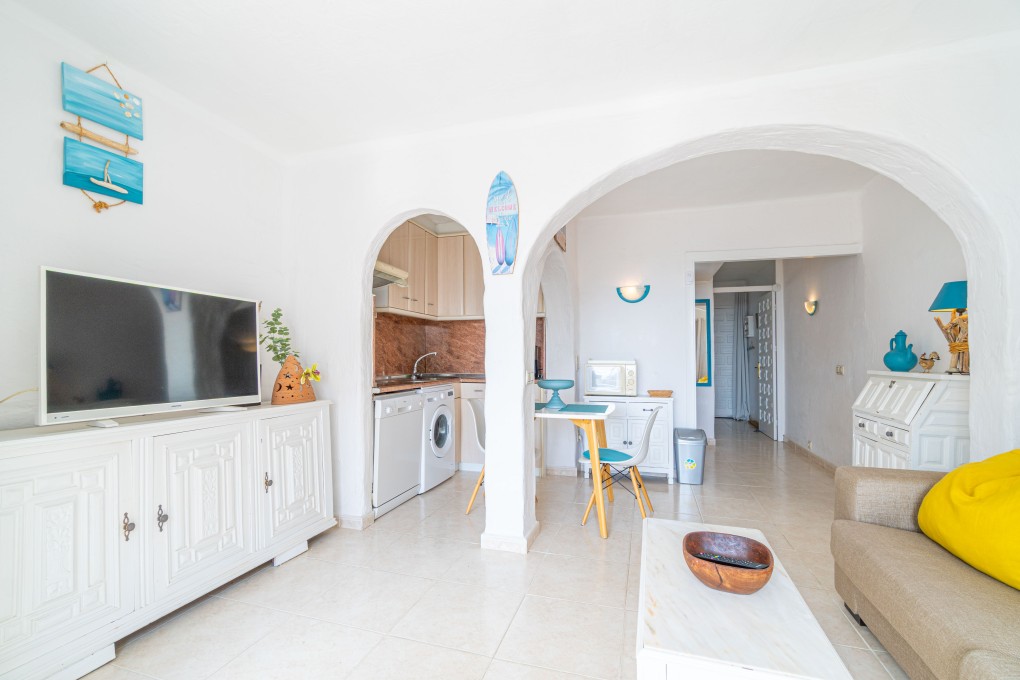 Apartamento con vistas al mar a 50m de la playa, edificio pequeño, 1 habitación doble, 1 plaza de aparcamiento, ascensor.